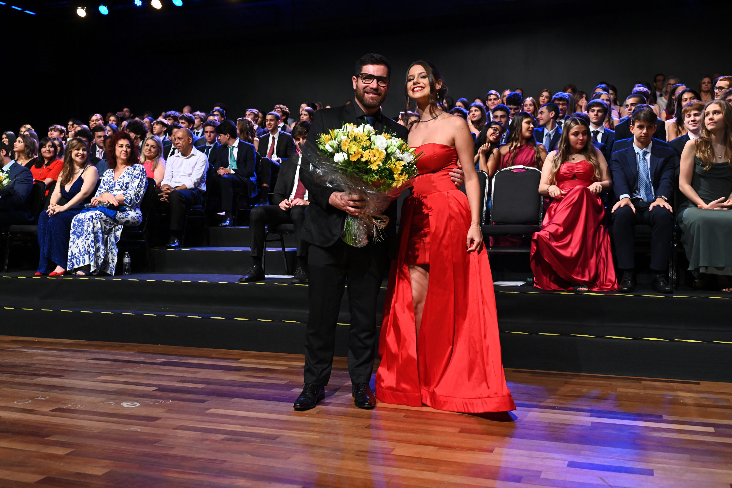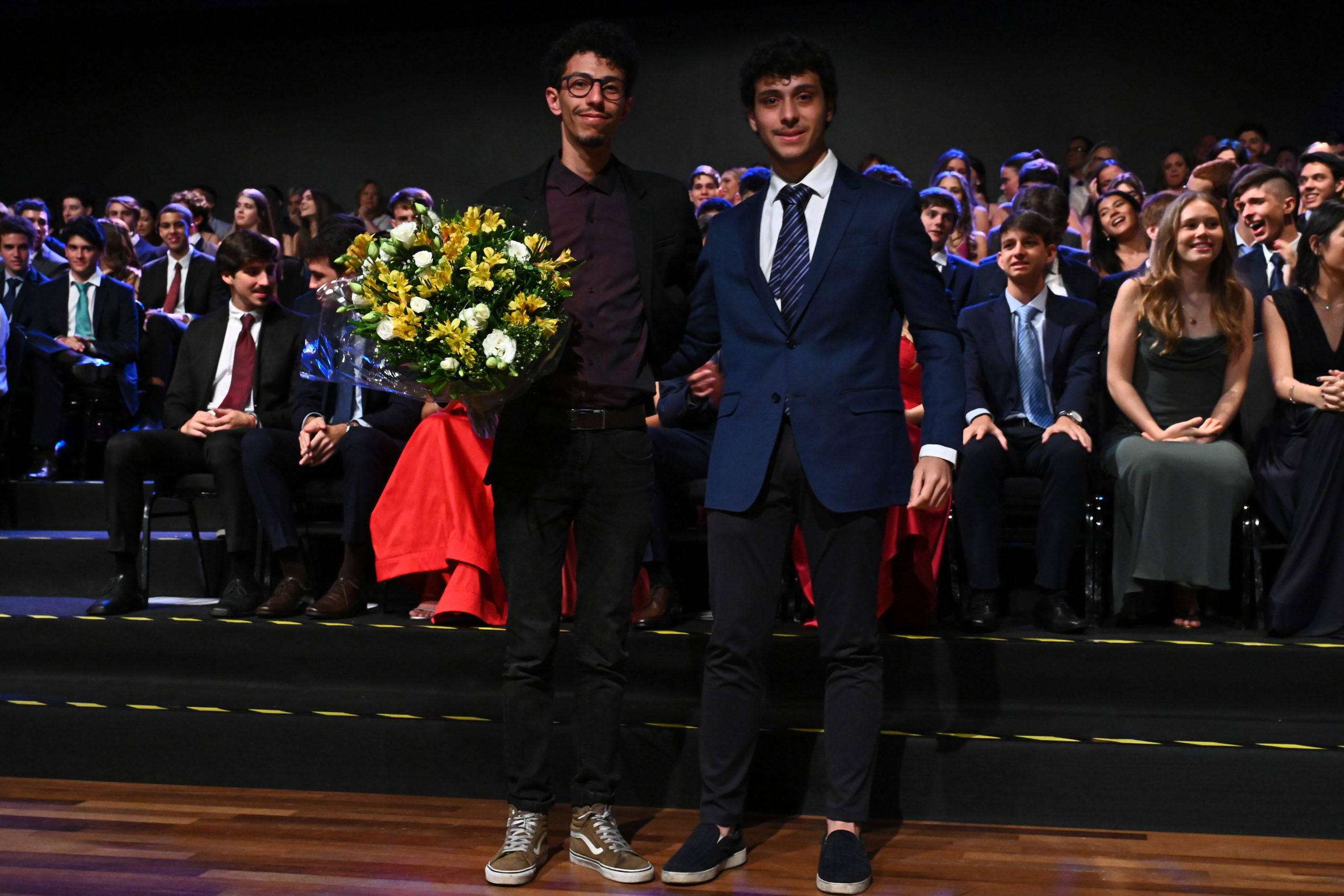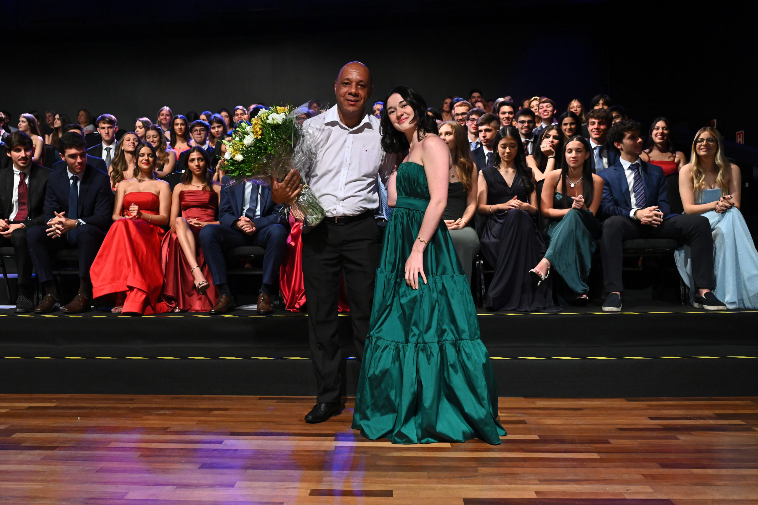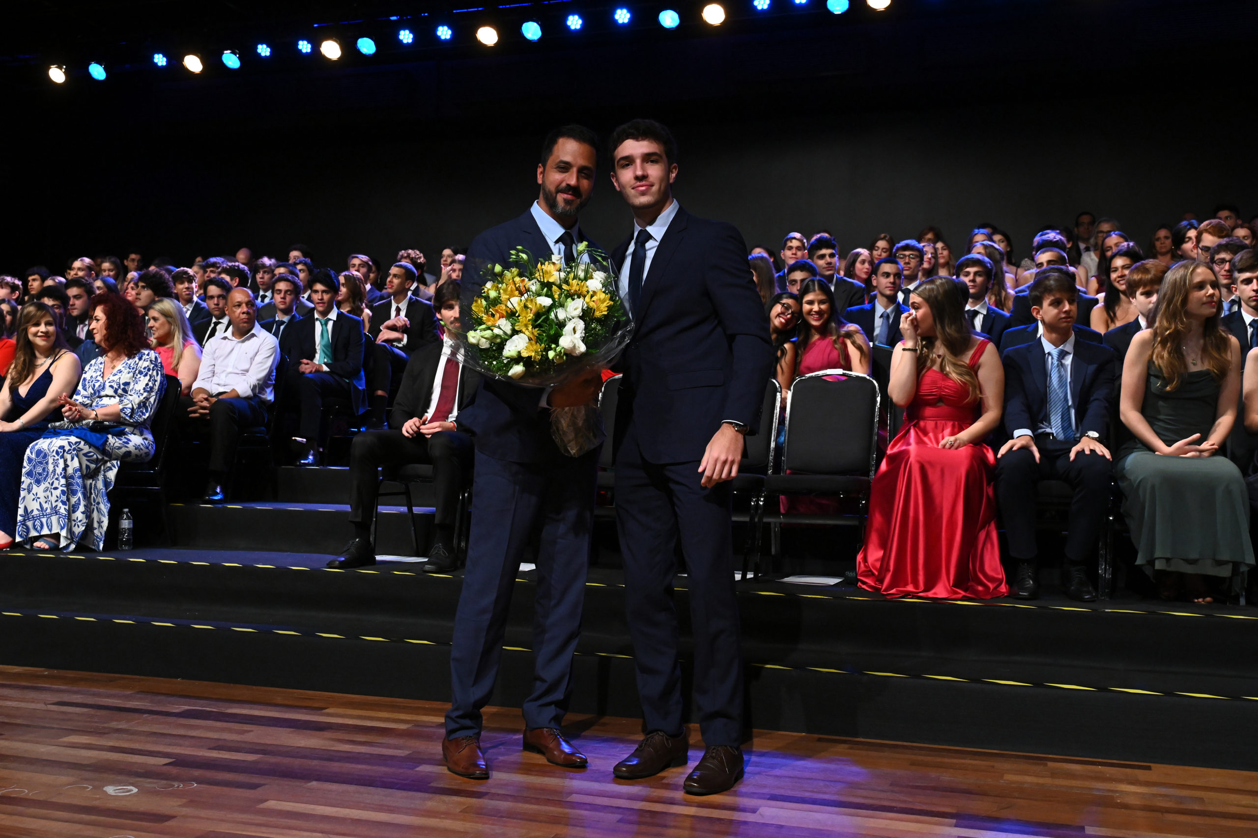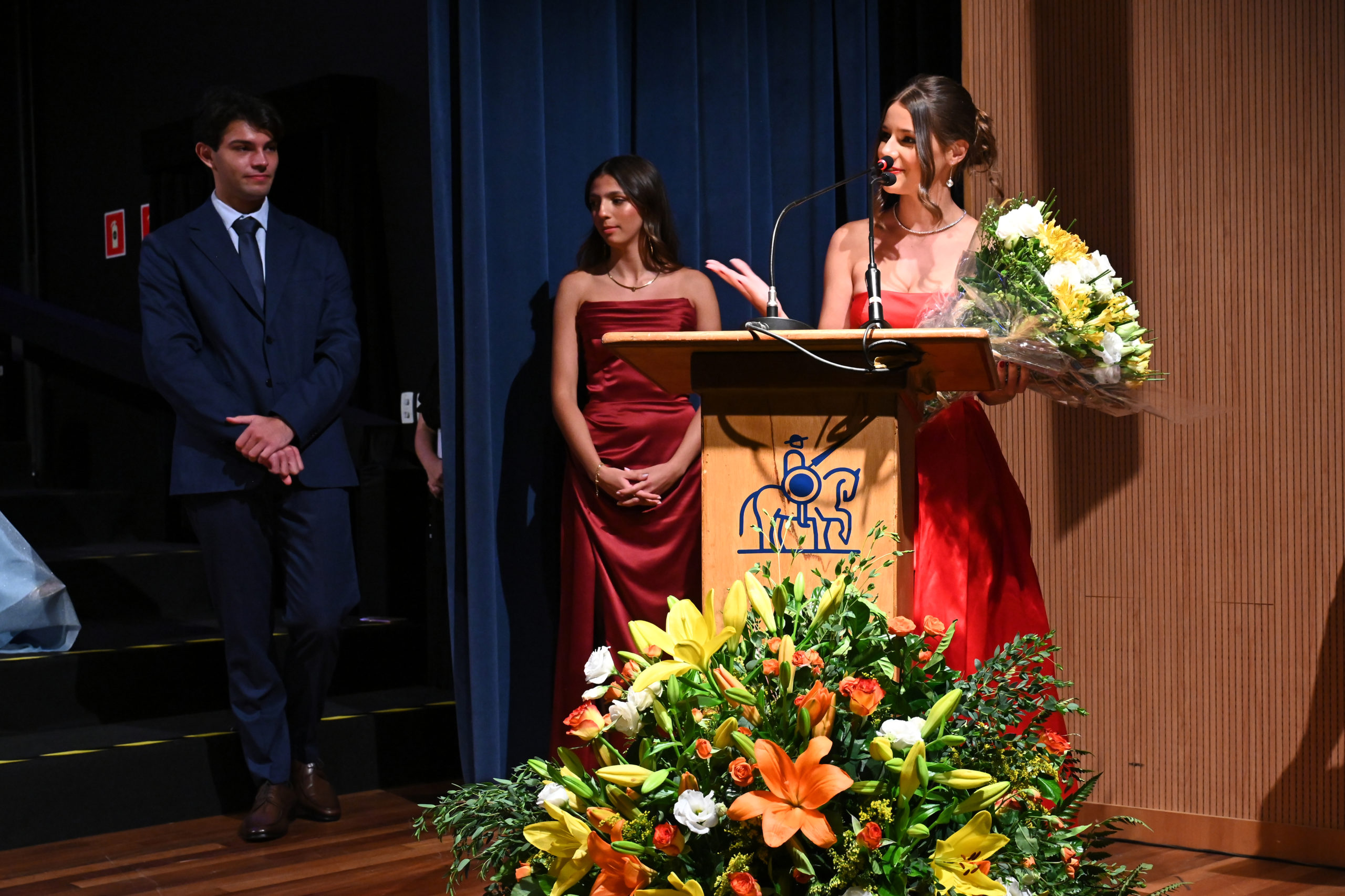 Os oradores da turma – Beatriz Silveira Nassa, Eduardo Simon Ribeiro do Valle, Isabela Alonso Maimone, Pedro Seidl Farhat Caviglia e William Raposo do Amaral Aretz – trouxeram lágrimas aos olhos de muitos ao compartilharem histórias, aprendizados e momentos inesquecíveis vividos ao longo de sua jornada escolar. Em seguida, apresentaram um vídeo com a retrospectiva do ano repleto de fotos e lembranças.