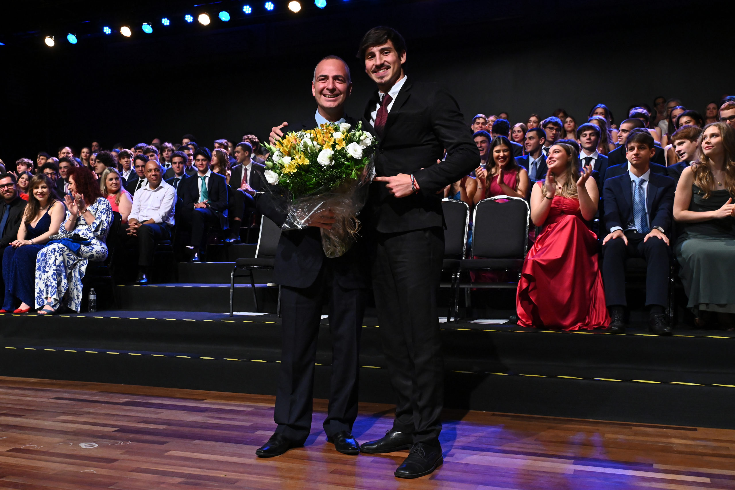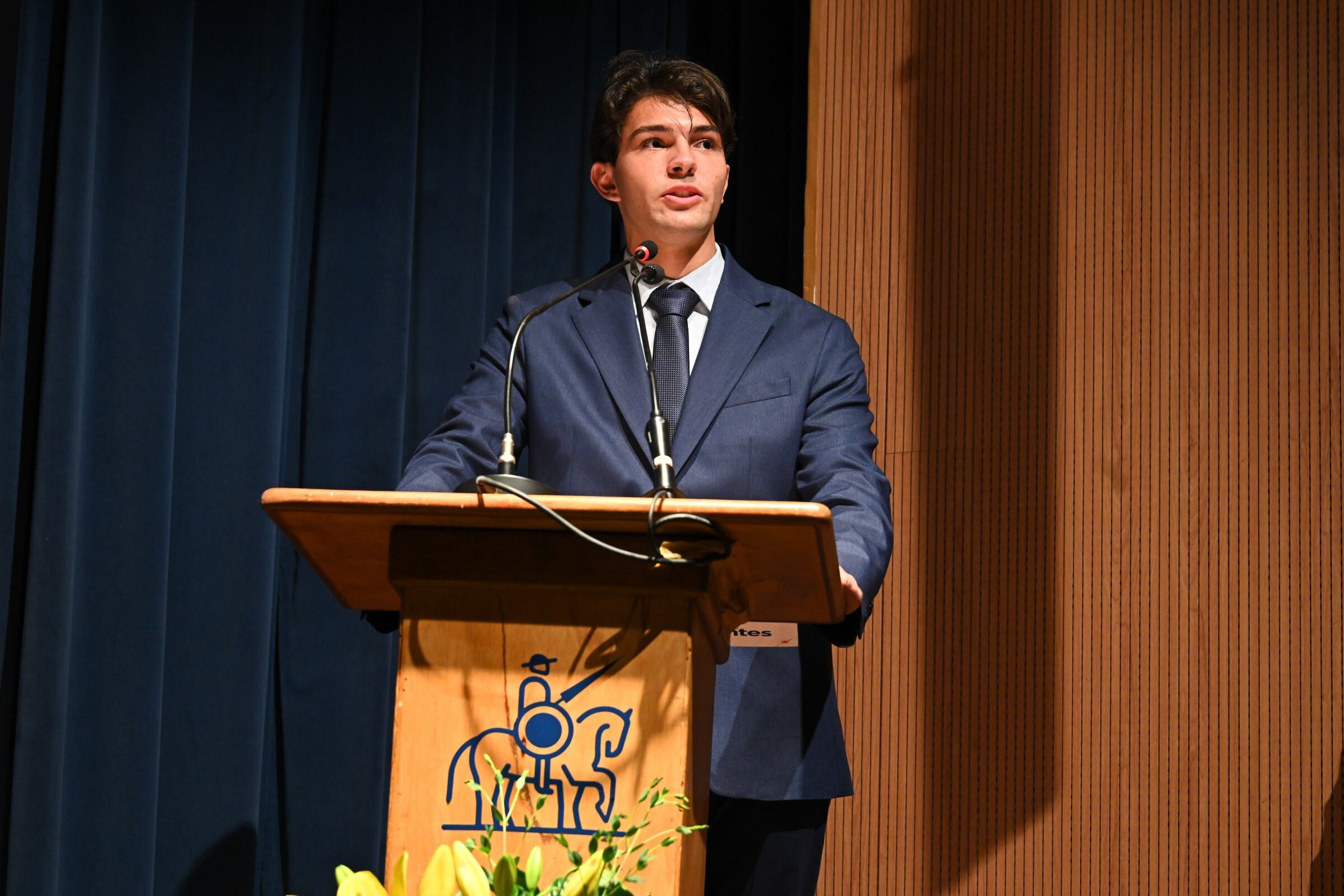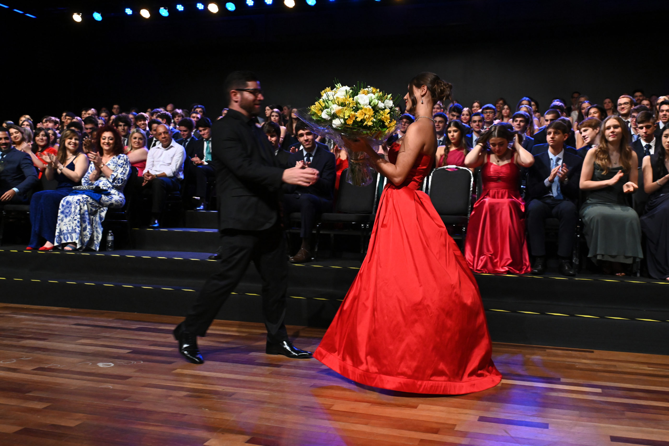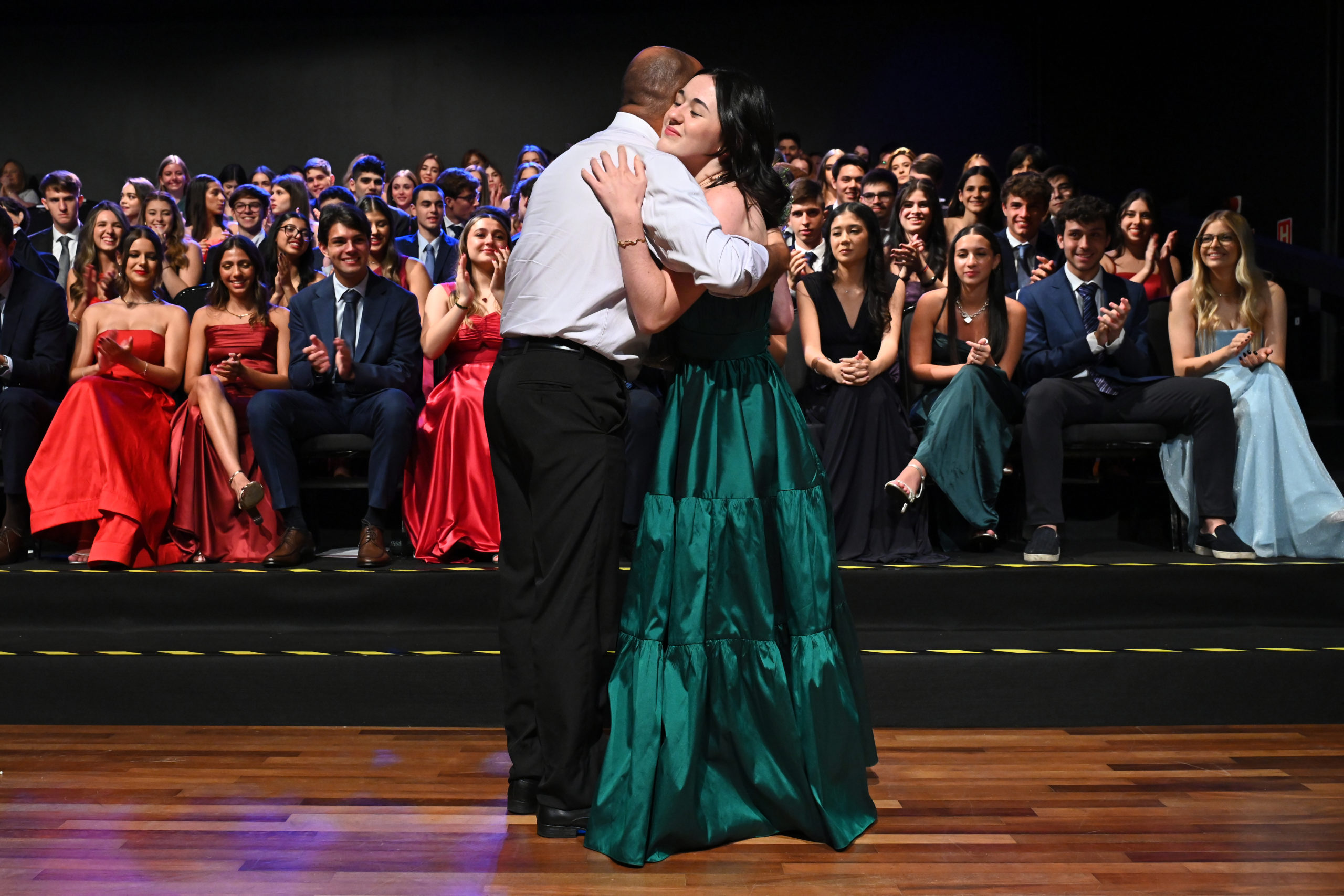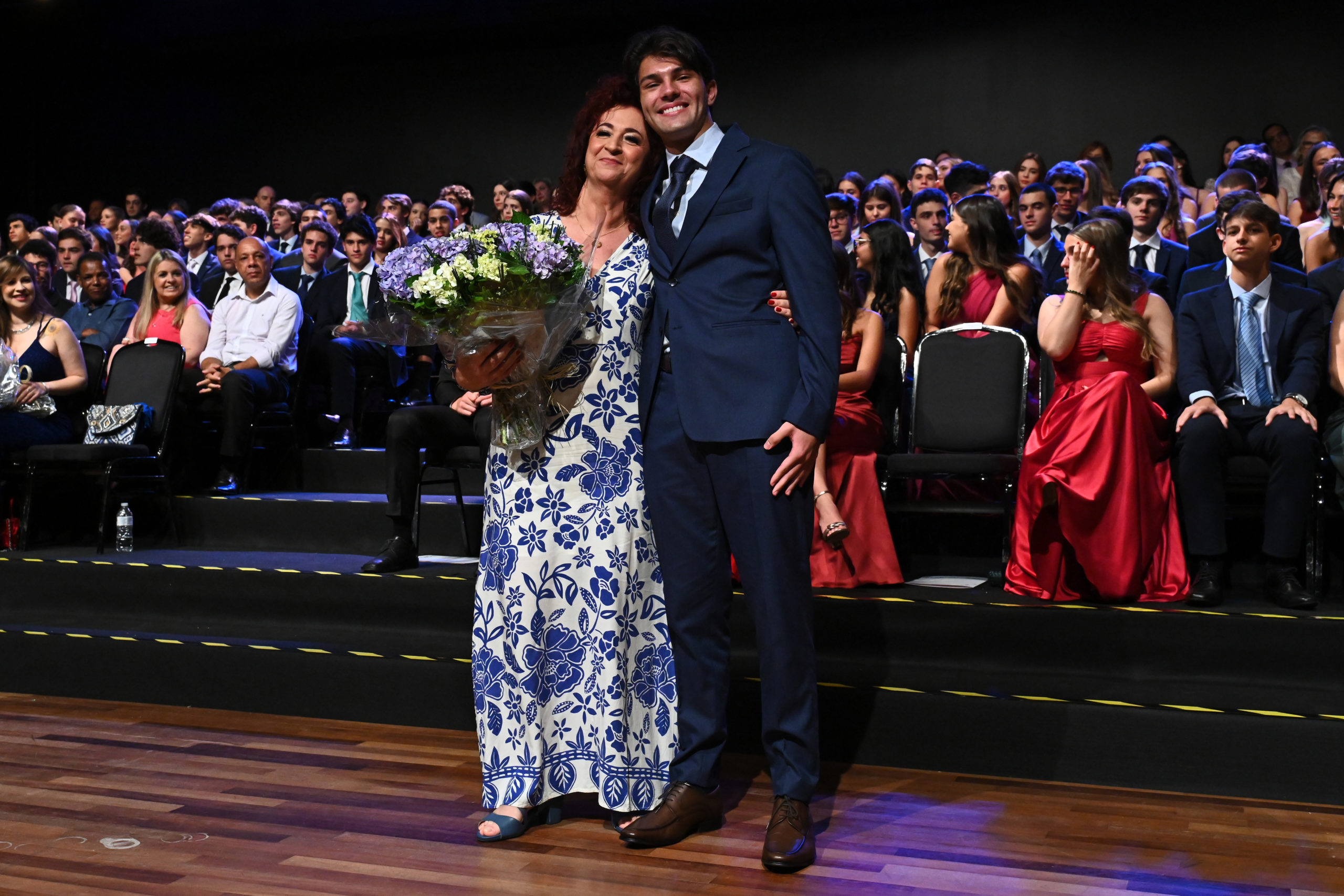 Os oradores da turma – Beatriz Silveira Nassa, Eduardo Simon Ribeiro do Valle, Isabela Alonso Maimone, Pedro Seidl Farhat Caviglia e William Raposo do Amaral Aretz – trouxeram lágrimas aos olhos de muitos ao compartilharem histórias, aprendizados e momentos inesquecíveis vividos ao longo de sua jornada escolar. Em seguida, apresentaram um vídeo com a retrospectiva do ano repleto de fotos e lembranças.
