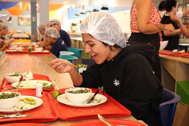 Após uma sensibilização sobre a história e significado de cada uma das atividades, os alunos colocaram em prática o que aprenderam. Na oficina de culinária árabe prepararam um delicioso tabule, prato representativo dessa cultura. Ao ritmo da salsa e merengue descobriram o jeito caribenho de ser e dançar. Na oficina “Turbantes – Raízes Africanas” desvendaram o segredo do adorno e de seus significados. Na oficina de caligrafia árabe as belezas do alfabeto árabe foram apresentadas aos alunos, que aceitaram o desafio de escrever seu próprio nome. Ao final do dia, os alunos trocaram suas impressões e experiências sobre as oficinas.