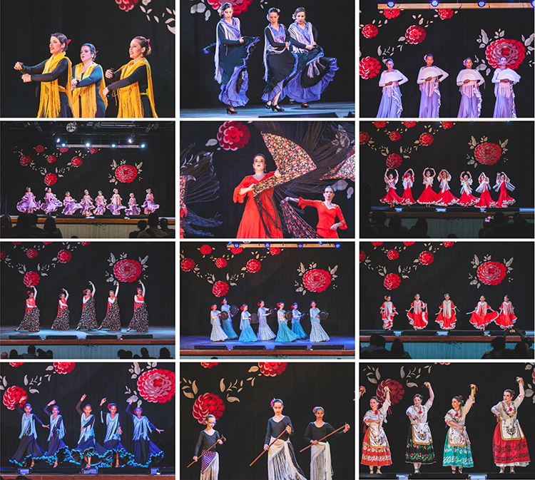 Dirigido pela professora Laureana de la Iglesia Alonso, com coreografias de sua autoria e da professora Elisabete Martins da Silva, as bailarinas do curso extra do Colégio Miguel de Cervantes, do Grupo La Mancha e do Cervantes Solidário trouxeram movimentos e cores em homenagem à trajetória da dança espanhola.