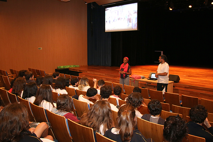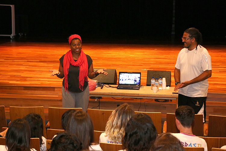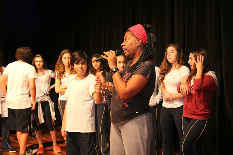 Dando continuidade aos estudos propostos sobre a dança, o professor trouxe a especialista em danças brasileiras Mildred Sotero para uma oficina com os alunos. Na atividade, a professora discorreu sobre o tema da dança como elemento de construção cultural. Mildred enfatizou a influência de outras culturas, como a africana, na relação da sociedade brasileira com a dança.