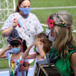 A musicalidade ficou bem harmoniosa acompanhada do acordeom e da batucada. Mas acordeom no Carnaval? Sim… Isso mesmo! O acordeom é o piano que saiu do palco, dos eventos em salões nobres e palacetes, aproximando a música do povo. É justo, portanto, que ele esteja presente no nosso desfile trazendo a melodia para o Carnaval Cervantino da Educação Infantil e 1º ano do Ensino Fundamental.