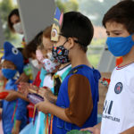 Neste ano de 2022, promovemos momentos de pesquisa sobre o folguedo, o que gerou grande expectativa nas crianças. Na sexta-feira, dia 25 de fevereiro, fizemos um cortejo com sequências rítmicas de percussão improvisada com garrafas PET. Nutrimos as crianças com diferentes linguagens artísticas e imagens de diferentes regiões do Brasil que comemoram essa data festiva.