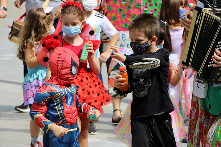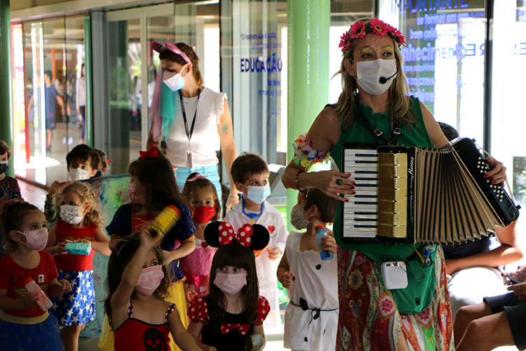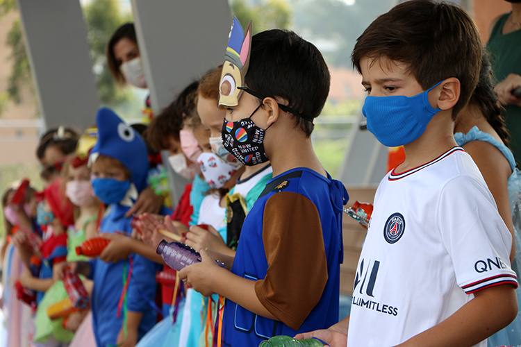 Nesse dia, crianças muito animadas desfilaram com suas fantasias e exibiram os estandartes e cantoria pelo Colégio. Foram as marchinhas que trouxeram a narrativa, contando fatos e contextos de uma época bem diferente da que vivemos na atualidade. Compositores da nossa história, tais como Chiquinha Gonzaga, Carmem Miranda, Ivan Ferreira, João de Barro, Haroldo Lobo e Antônio Nássara, entre outros, foram contemplados no nosso cortejo alegre e dançante.