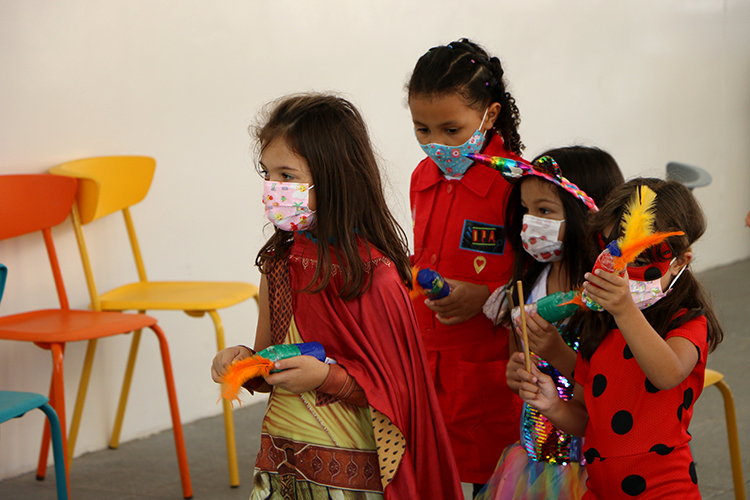 Neste ano de 2022, promovemos momentos de pesquisa sobre o folguedo, o que gerou grande expectativa nas crianças. Na sexta-feira, dia 25 de fevereiro, fizemos um cortejo com sequências rítmicas de percussão improvisada com garrafas PET. Nutrimos as crianças com diferentes linguagens artísticas e imagens de diferentes regiões do Brasil que comemoram essa data festiva.