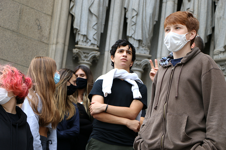 El lunes 21 de marzo, alumnos del 1er. Curso de Enseñanza Media hicieron una visita al centro de São Paulo. El estudio del medio fue propuesto por el itinerario de formación de Multiculturalismo, cuyos responsables son los profesores Fabio Nogueira de Matos Martins, de Artes y Teatro, Ivan Aparecido Gotardelo Pacheco Júnior, de Letras y Renato Fontes de Souza, de Historia.