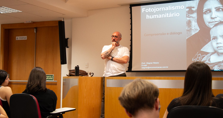 Durante a conversa, Wagner compartilhou sua trajetória e abordou aspectos fundamentais do fotojornalismo humanitário, mostrando como a fotografia pode ser uma ferramenta poderosa para contar histórias de pessoas e comunidades em diferentes contextos sociais e culturais.