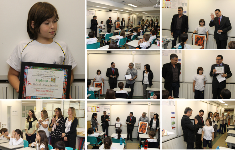 O cônsul do México, José Gerardo Traslosheros Hernández, esteve em 25 de maio no Colégio Miguel de Cervantes para entregar ao aluno Pedro de Oliveira Franken o prêmio do 18º Concurso de Desenho Infantil Éste es mi México: Los derechos de los niños y las niñas, promovido em 2014 pelo IME, Instituto de los Mexicanos en el Exterior.