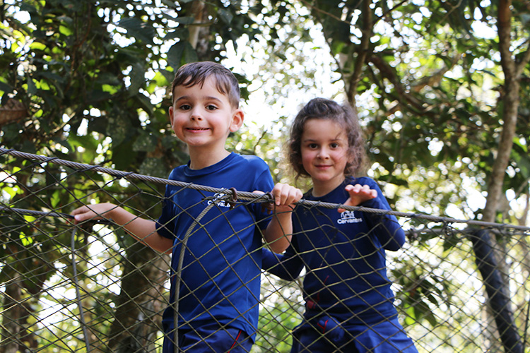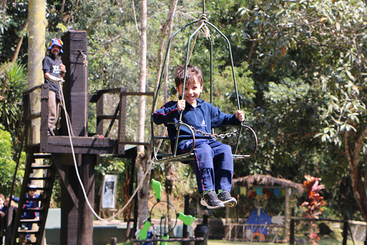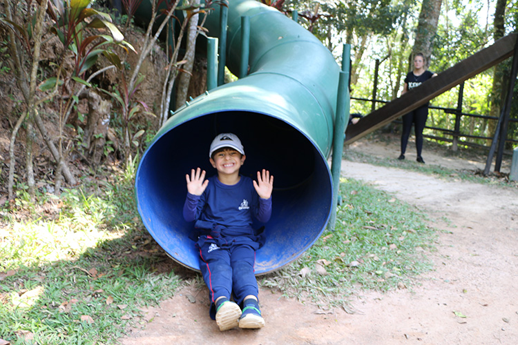 Ao final, os alunos, monitorados pelos instrutores, caminharam pela ponte de arvorismo, subiram na montanha de pneus e se divertiram bastante nos escorregadores.