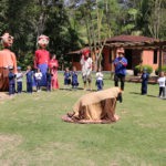 Depois do almoço, os pequenos estudantes assistiram a uma peça de teatro com o boi-bumbá e réplicas dos bonecões de Olinda. Todos se reuniram em uma roda para cantar e dançar ao som de canções tradicionais brasileiras.