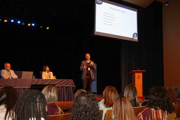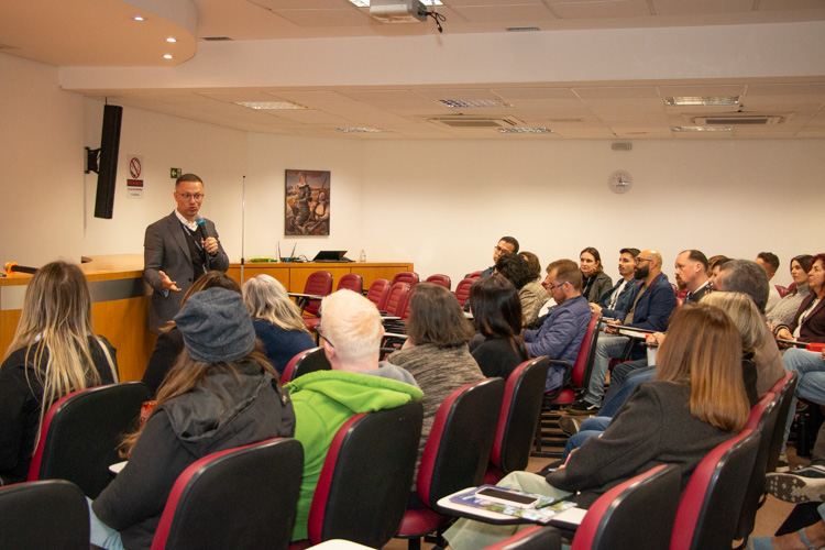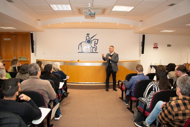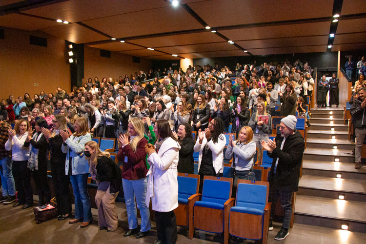 Em seguida, todos se dirigiram ao teatro para receber as boas-vindas da equipe diretiva, que apresentou novos direcionamentos, informações e palavras de ânimo para o semestre que se inicia.