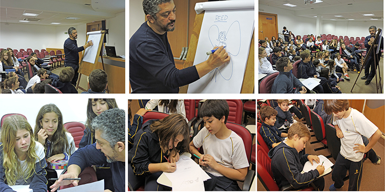 O Colégio Miguel de Cervantes recebeu, nos dias 9 e 12 de agosto, o conceituado roteirista Kaled Kalil Kanbour para ensinar aos alunos do 6º ano como elaborar um roteiro de histórias em quadrinhos.