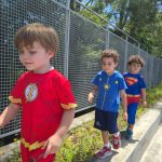 Nas aulas de Arte da Educação Infantil, com a professora Nataly Espadaro, a proposta foi mergulhar no universo das cores e das fantasias. Em uma sensibilização estética, as crianças exploraram retalhos de tecidos, fitas e brilhos sobre uma estrutura de corpo humano, em bonecos e também em si mesmas. Experimentaram o colorido, as texturas e as possibilidades de criação, percebendo o corpo como espaço de expressão e invenção.
