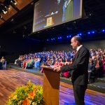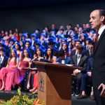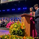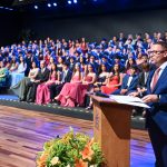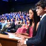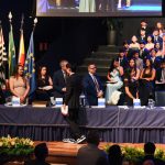 Em seguida, os oradores das turmas, Laura Porto Cabral e Matheus Martins Munhoz, compartilharam lembranças dos anos de convivência, destacando a amizade e o companheirismo da turma, com menção especial à viagem à Espanha.