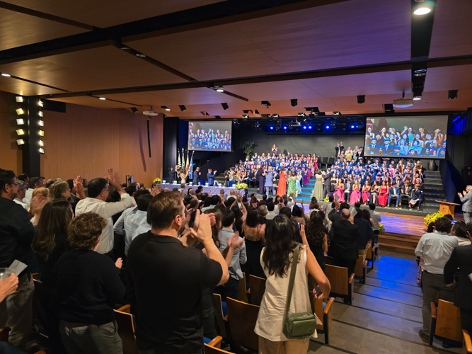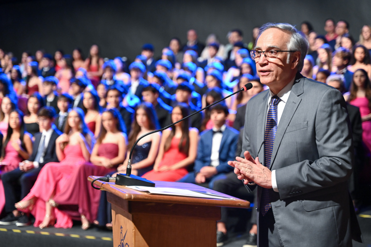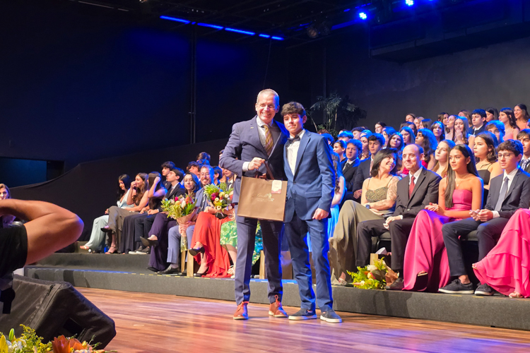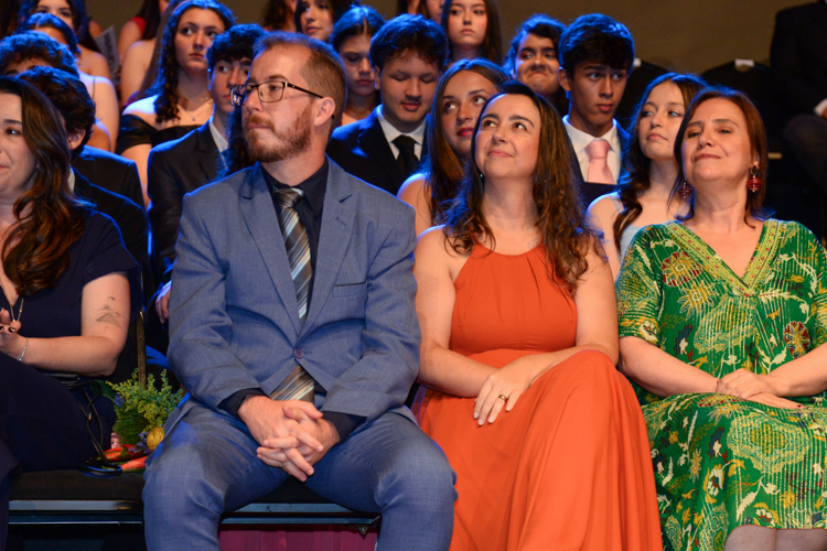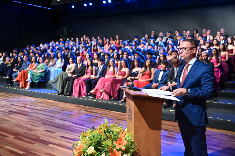 Em seu discurso, o diretor geral, Jorge Berné, destacou a formatura como a conclusão de um ciclo fundamental e o início de uma nova etapa marcada por mais autonomia, responsabilidade e escolhas conscientes. Dirigiu um agradecimento especial às famílias pela confiança, aos professores e às equipes pelo trabalho diário e reforçou que os alunos não estarão sozinhos nessa caminhada, contando sempre com o apoio da comunidade escolar. Ao recorrer à metáfora do instrumento musical em processo de afinação, convidou os formandos a compreenderem o aprendizado como um percurso contínuo, feito de esforço, descobertas e acompanhamento. “Hoje, ao terminar esta etapa, não celebramos uma peça terminada, mas o começo de uma interpretação muito maior”, afirmou, incentivando os alunos a seguirem com coragem, curiosidade e abertura para o futuro.
