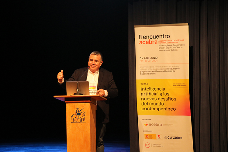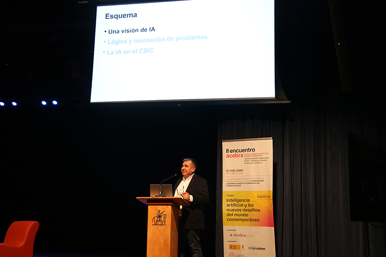Após isso, o evento seguiu com a conferência do pesquisador do Conselho Superior de Investigações Científicas da Espanha, Felip Manya, que discorreu sobre a Inteligência Artificial, assunto que dá a temática do encontro. Houve também o painel sobre avanços na cooperação entre Brasil e Espanha, com Dalila Andrade, do (CNPq), o presidente da Fundação de Apoio à Pesquisa do Estado de São Paulo, Marco Zago, a secretária-geral de Investigação do Ministério da Ciência, Inovação e Universidades da Espanha, Eva Ortega Paíno, o chefe do Departamento de Coordenações de Relações Culturais e Científicas da AECID, Santiago Sierra, o diretor da Fundação Ramón Areces, Raimundo Pérez-Hernández y Torra, o delegado da CDTI, Carlos Quintana, a diretora de área de centro da Agência Galega de Inovação, María Fontenla, e o presidente da RAICEX, Rodrigo Valiente.