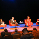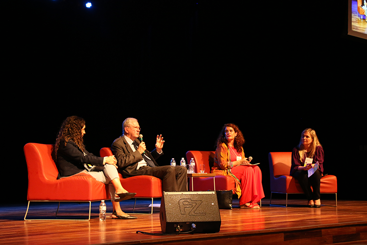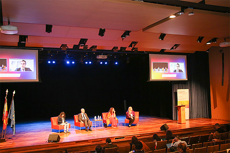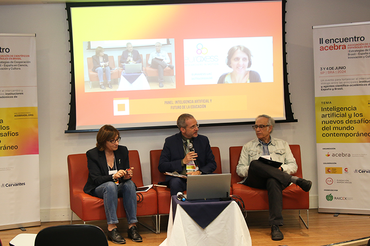 As palestras foram encerradas com a apresentação do painel sobre Inteligência Artificial e o futuro da educação, mediado pelo diretor do Colégio Miguel de Cervantes, Jorge Berné, e com a participação do coordenador de TE do Colégio Miguel de Cervantes, Antonio Abello, da diretora do Instituto Cervantes de Porto Alegre e Brasília, Raquel Guillemas, e da coordenadora regional da EURAXESS, Charlotte Grawitz.