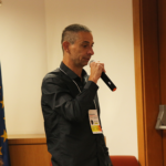 Em seguida, houve a apresentação do segundo painel, que tratou dos aspectos sociais do uso da Inteligência Artificial. Tal apresentação contou com a presença de João Claudino, pesquisador em Educação Física da Universidade Federal do Piauí, Celina Lage, artista digital da Universidade do Estado de Minas Gerais, e Marcos Quiles, pesquisador e professor do Instituto de Ciência e Tecnologia da Unifesp.