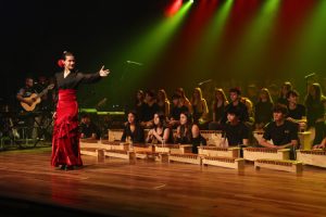 A apresentação dos 9ºs anos trouxe os ritmos ijexá de “Andar com fé”, de Gilberto Gil, ritmo de matriz iorubá e Ilê Ayê”, de Paulinho Camafeu, celebrando o canto coletivo como expressão de identidade afro-brasileira. Os ritmos flamencos incorporados ao repertório como parte da preparação para a viagem à Espanha estiveram presentes em “Campanitas de la aldea”, de Francisco de Val e “Almoraima”, de Paco de Lucía com participação especial da aluna Stella Pires bailaora flamenca. Além disso, o público pôde desfrutar da execução de “Get Lucky”, de Pharrell Williams e Nile Rodgers e “Viva la Vida”, da banda Coldplay.