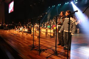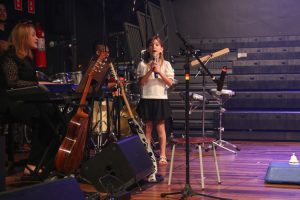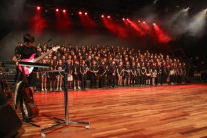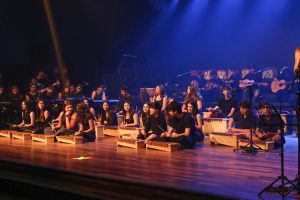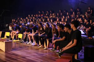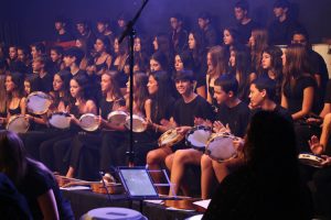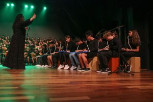A mostra musical teve início com os 8ºs anos, que trouxeram a força ancestral do jongo aproximando os estudantes da tradição afro-brasileira do Vale do Ribeira e das raízes Bantu de Angola e Congo, vivenciadas também na viagem de estudos ao PETAR. Também foram executadas canções populares brasileiras e latinas como “Oye como va?”, de Tito Puente; e “Havana”, de Camila Cabello, agregou o pop de influência cubana a um trabalho de acentuação rítmica, dinâmica vocal e expressão corporal.