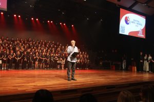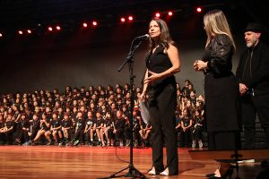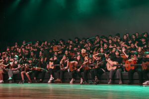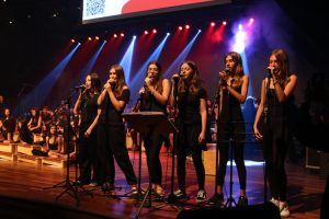 Por fim, o 5º ano levou ao palco um repertório de intensidade e personalidade. “Malagueña Salerosa” trouxe desafios de articulação inspirados na música hispânica; “Eu só quero um Xodó” incorporou o swing do forró nordestino; “Flor e o Beija-Flor” resgatou a influência da guarânia paraguaia na música latino-americana; e o encerramento com “Sweet Child O’ Mine”, do Guns N’ Roses, elevou a energia da plateia, evidenciando domínio rítmico, respiração, presença de palco e integração do grupo.