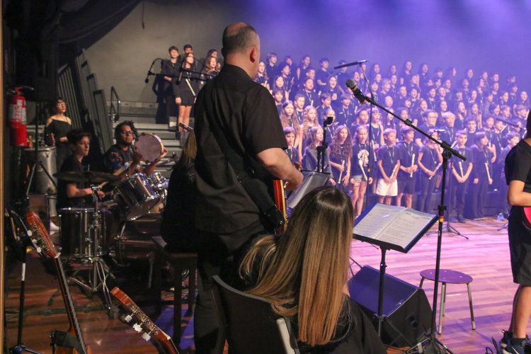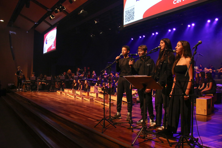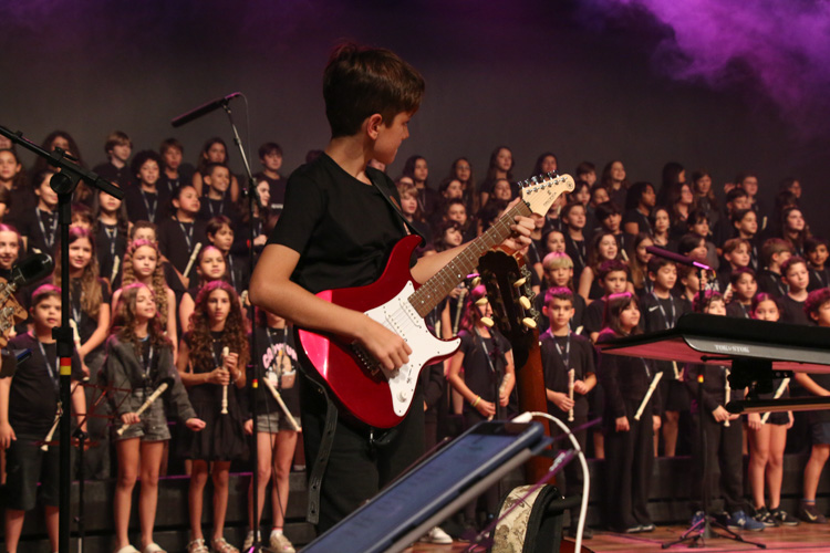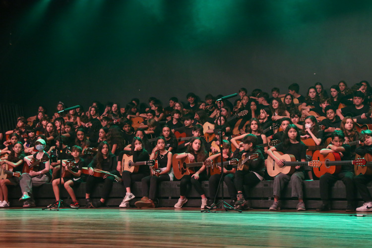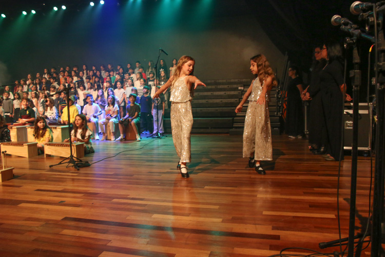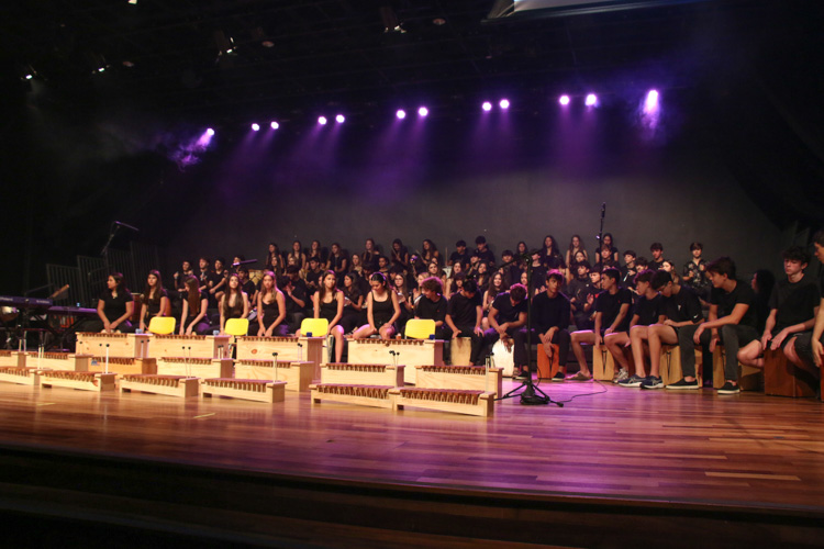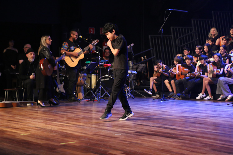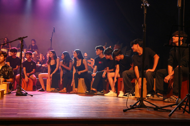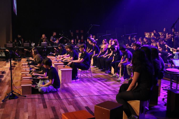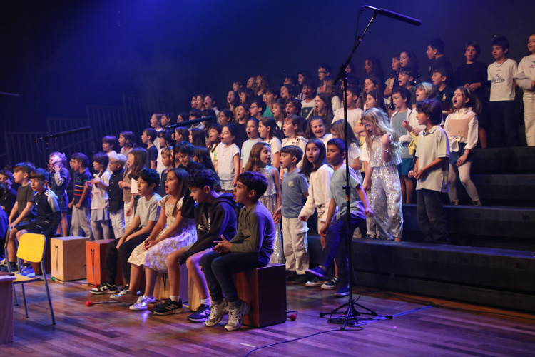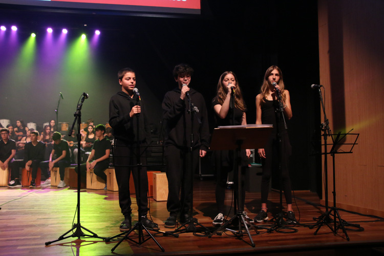 A mostra musical teve início com os 8ºs anos, que trouxeram a força ancestral do jongo aproximando os estudantes da tradição afro-brasileira do Vale do Ribeira e das raízes Bantu de Angola e Congo, vivenciadas também na viagem de estudos ao PETAR. Também foram executadas canções populares brasileiras e latinas como “Oye como va?”, de Tito Puente; e “Havana”, de Camila Cabello, agregou o pop de influência cubana a um trabalho de acentuação rítmica, dinâmica vocal e expressão corporal.