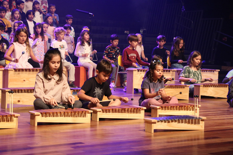 Paralelamente à exposição de arte, a Mostra de Música transformou o teatro em um espaço de celebração sonora, reunindo alunos do 2º ao 9º ano em apresentações que evidenciaram a diversidade cultural e a maturidade artística dos alunos. O repertório abrangeu tradições africanas como jongo e ijexá, música popular brasileira, clássicos internacionais e arranjos contemporâneos.