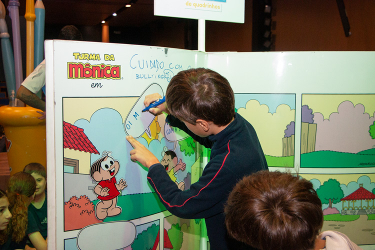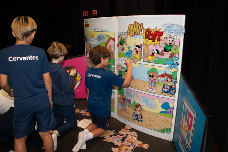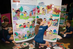 Dirigido por monitores de Conhecer, el taller presentó el potencial del cómic como herramienta para la alfabetización y la formación integral de los niños. Utilizando cómics gigantes y los icónicos personajes de A Turma da Mônica, los alumnos pudieron crear narrativas, ejercitando su imaginación y dando vida a sus propias historias.