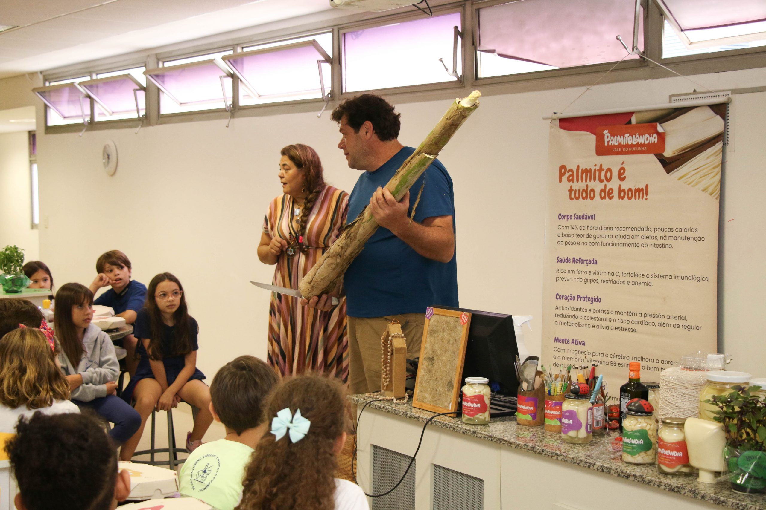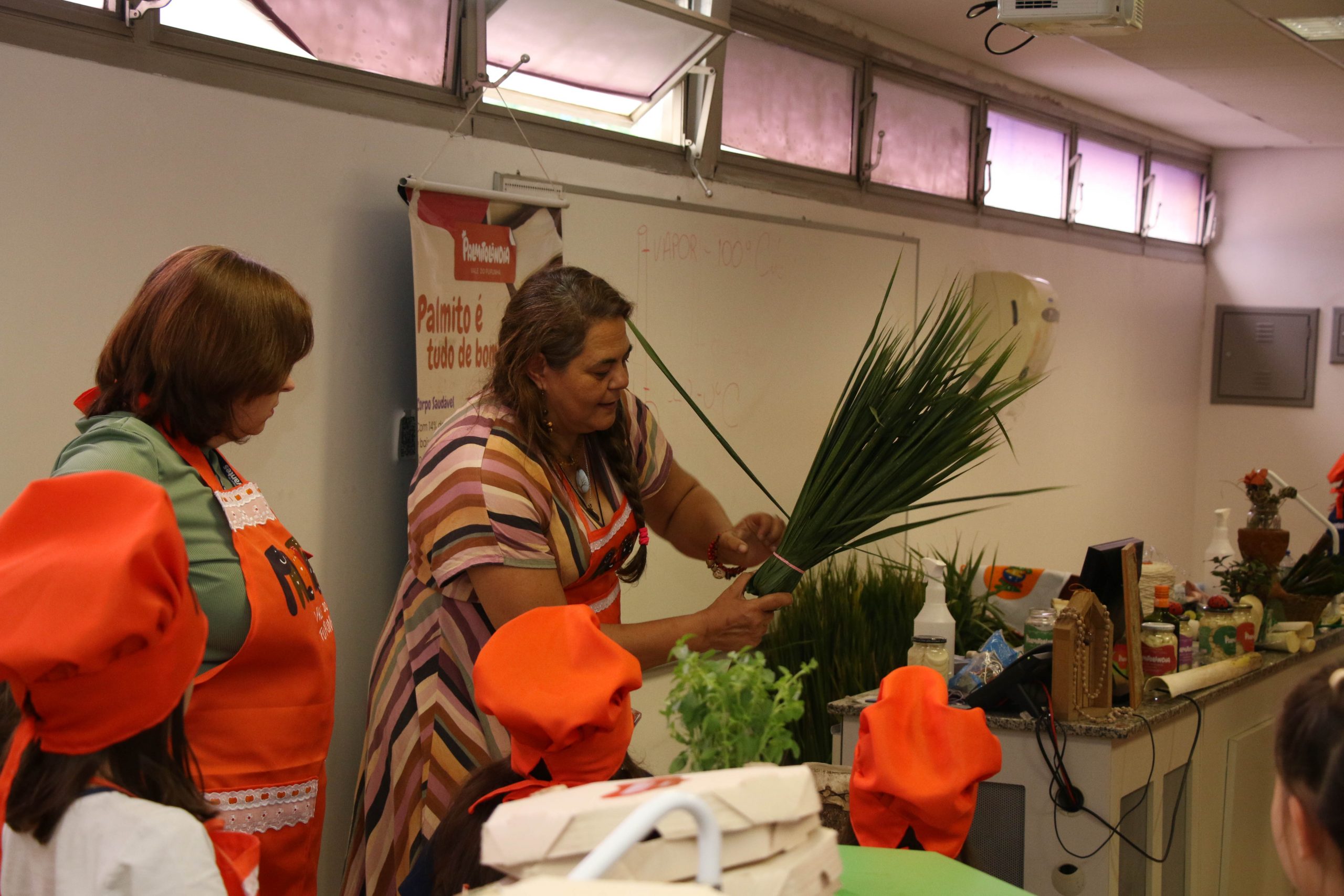 Durante el taller, los alumnos aprendieron cuestiones sobre el cultivo y el uso sostenible del palmito pupunha, con lo que trajeron un “pedacito de la Mata Atlántica” a la ciudad. En tres etapas prácticas, prepararon recetas como caprese vegano y Romeo y Julieta para intolerantes a la lactosa, confeccionaron objetos sostenibles con partes de la planta, como una escoba hecha con sus hojas; también reflexionaron sobre los procesos productivos y el papel de cada uno en la construcción de un futuro más sostenible.
