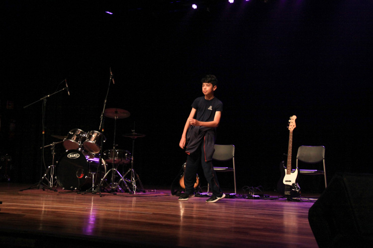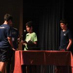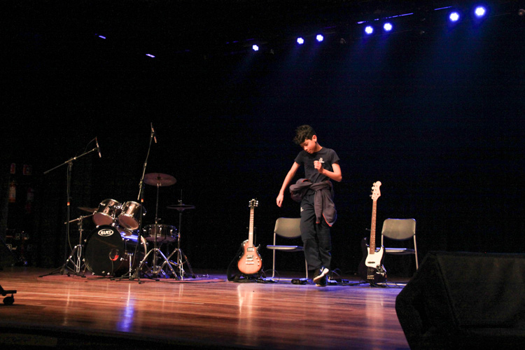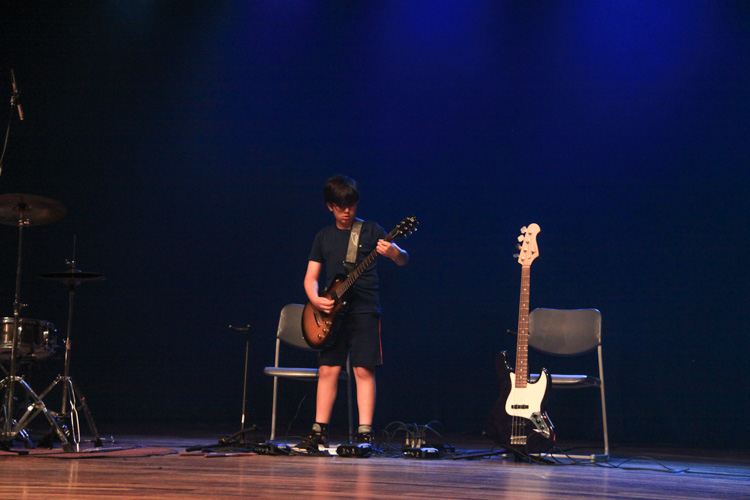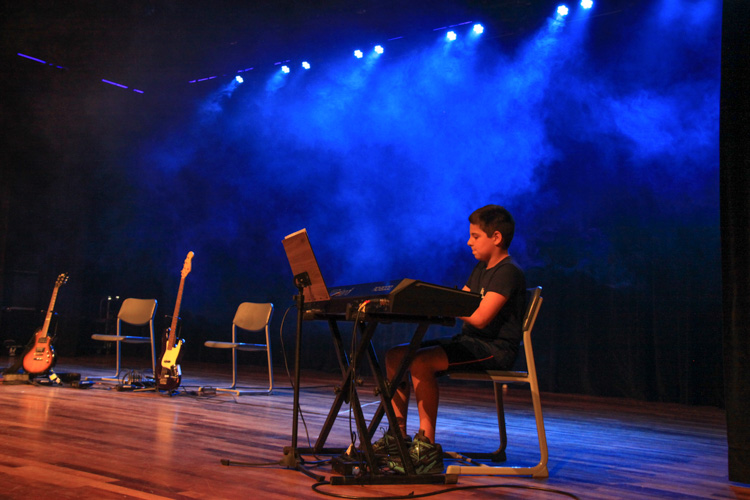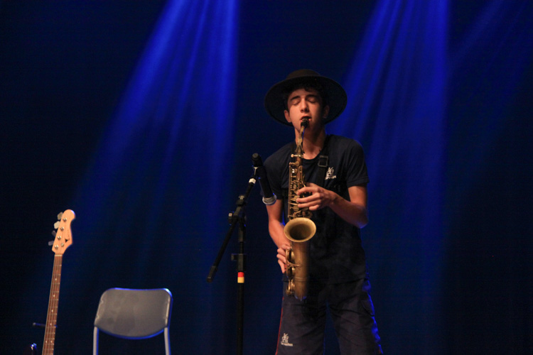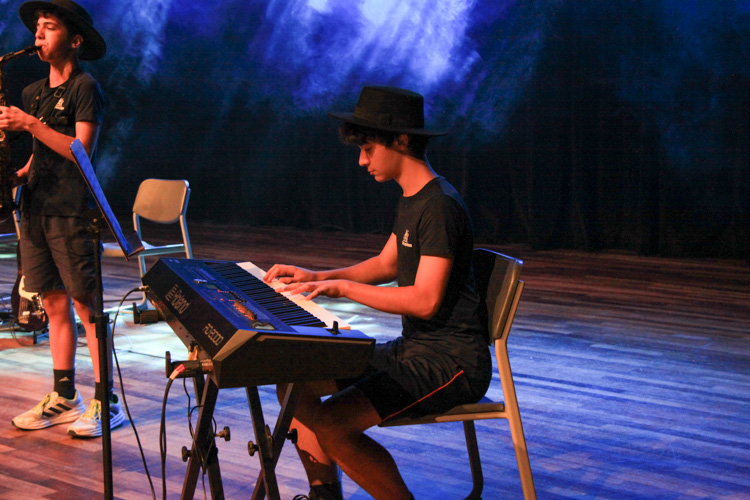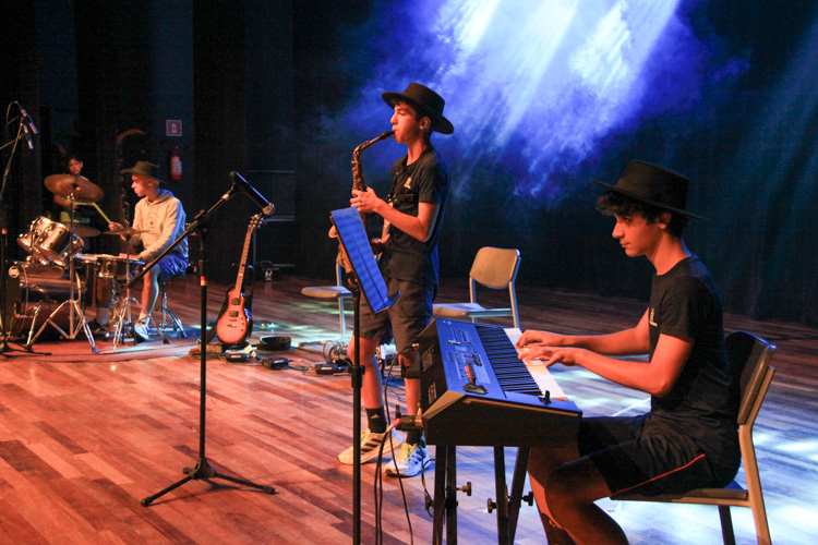 Eduardo Sampaio, 9º D, Enrico Christilli, 8º E, e Mauro Castanho, 8º E – My Way, bateria, saxofone e teclado.