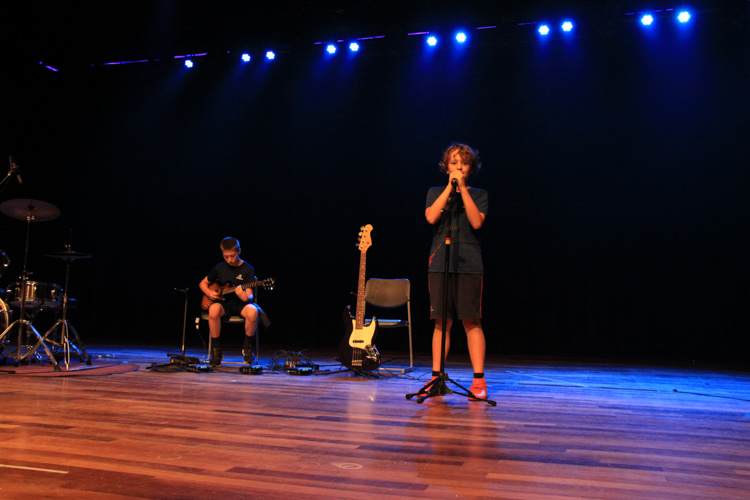 Enzo Keller e Gabriel Cauvilla, 6º B, voz e guitarra, Céu Azul, do Charlie Brown Jr.