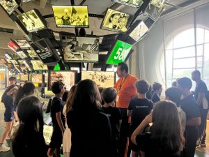 Durante a visita, os alunos conheceram as diferentes áreas do museu, que apresenta a história do futebol desde sua chegada ao Brasil, trazido por Charles Miller, até sua consolidação como paixão nacional. Além de explorar a evolução de bolas, chuteiras, uniformes e regras do jogo, o museu oferece um olhar sensível e abrangente sobre o esporte, relacionando-o ao contexto social, político e cultural de cada época. Assim, os estudantes perceberam que o futebol vai muito além das quatro linhas: ele acompanha mudanças, reflete comportamentos e influencia a construção da identidade brasileira.