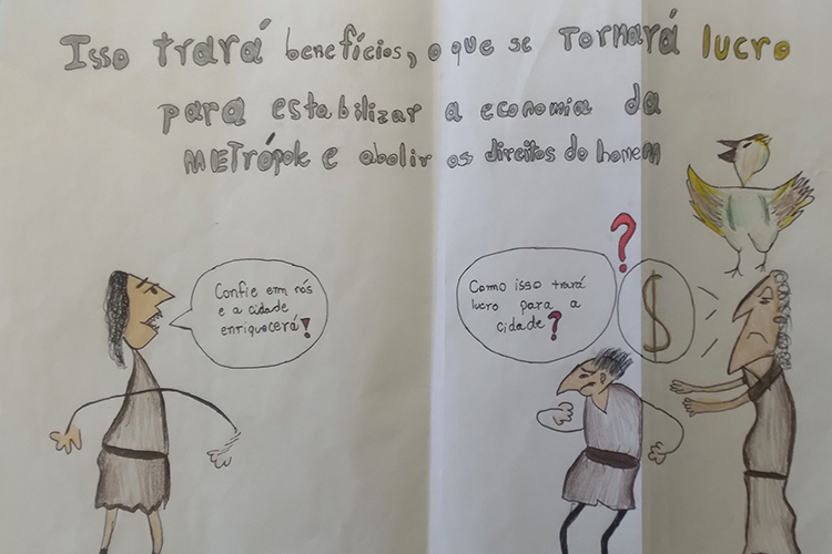 Además, cabe destacar que este trabajo forma parte del proyecto literario del ciclo: se continuará con el eje temático del primer trimestre, en el cual se realizaron lecturas dramáticas de la comedia griega ” Las aves “, de Aristófanes. La obra, a su vez, establece una alegoría en la que dos hombres, cansados de los males de Atenas, resuelven construir una ciudad en el cielo en cooperación con los pájaros de la ciudad, trabajando con valores humanos universales.